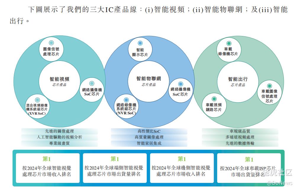 公司三大IC产品线涵盖智能视频、智能物联网及智能出行领域,其中智能视频业务是富瀚微的“营收压舱石”,广泛应用于网络摄像机、视频会议摄像头等核心安防场景,2022—2024年营收占比连续三年稳定在65%以上,为企业稳健运营提供了坚实支撑。
