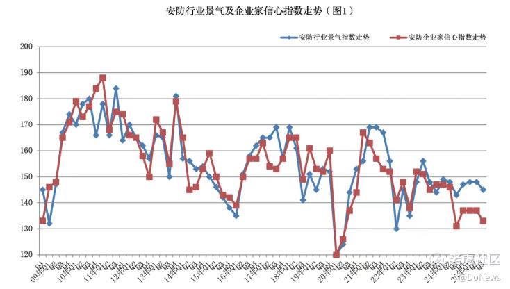 值得关注的是,国内安防行业在弱周期中已显现明确韧性与复苏迹象。中国安防协会数据显示,2025年三季度我国安防行业景气指数为145,虽较上季度微降3点,但较去年同期上升2点,持续处于“较景气区间”;59%的调查企业认为经营状况“良好”,同比、环比均呈上升态势。