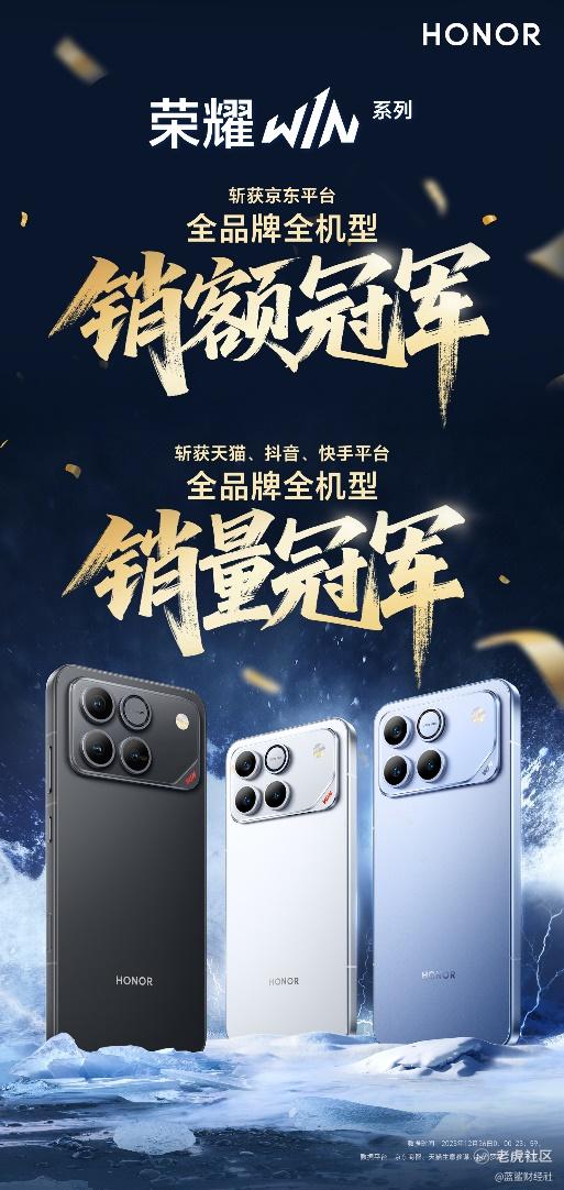 林洋对荣耀WIN手机的青睐并非个例,而是这款“年度电竞夯机”上市即热销的缩影。官方数据显示,荣耀WIN系列开售两小时便打破新荣耀成立以来新品“发布日销售纪录”;开售当天更一举斩获京东全品牌全机型销额冠军,以及天猫、抖音、快手全品牌全机型销量冠军,在销量、声量、搜索量、转化率、口碑等维度全面爆发。