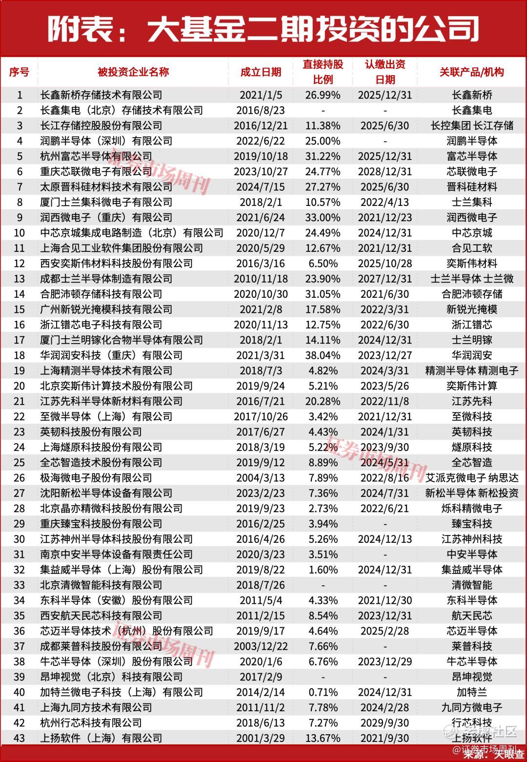 大基金持股40余家公司