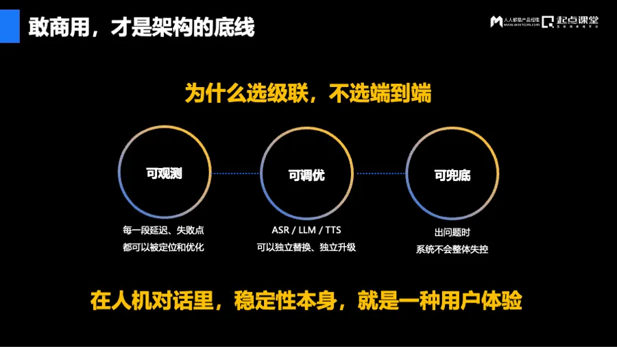 至于技术路线,技术圈虽然在吵“端到端”(End-to-End)很性感,但在真正大规模商用的战场上,级联(Cascade)才是王者。