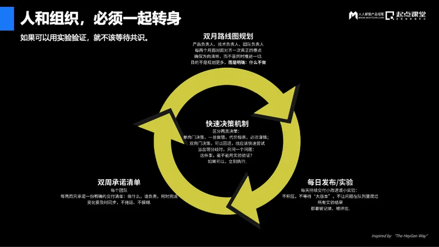 我们的产品从3月发布到10月底,迭代了9个版本;到今天,已经迭代了11个版本。核心在于快速决策机制——只要一个决策不是“单向门”(做了就无法回头),那就尽管去做实验。