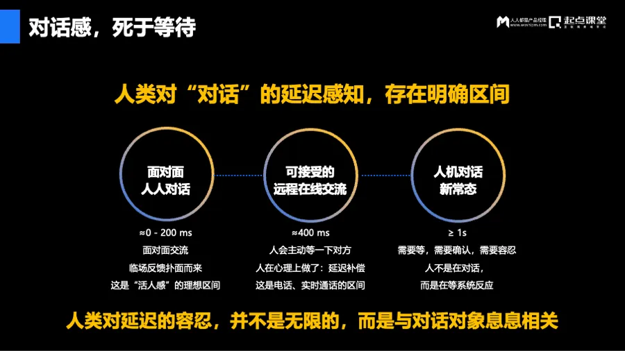 人类对延迟的感知是残酷的。面对面聊天,我说完你回复通常在200毫秒以内,这是“活人感”的基准;电信通话的金标准是400毫秒;而在线交流加上网络传输,通常在600毫秒左右——在这个区间里,人类其实已经做了“我在打电话”的心理补偿。