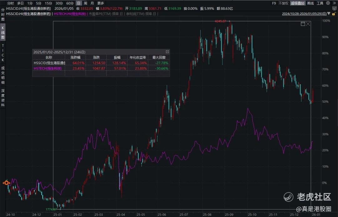 2025年,恒生港股通创新药指数的涨幅为64%,远跑赢回报只有23%的恒生科技指数。