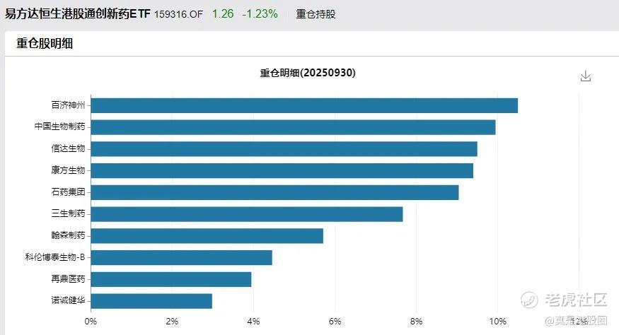 例如,港股通创新药ETF易方达(159316)是不错的选择,重仓股主要以创新药龙头所组成,未来BD交易金额越来越频繁,大药企平台的确定性更高。场外的朋友也可关注联接基金(A/C:024328/024239)。