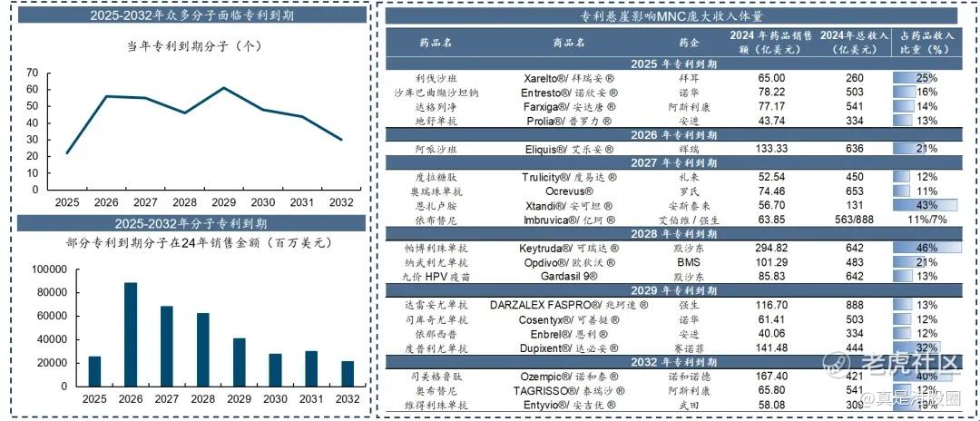 由于全球传统重磅畅销药增长放缓,跨国药企在2025-2032年间,有大量的专利药品将要到期,急需收购优质的管线来补强自身的收入多元化。