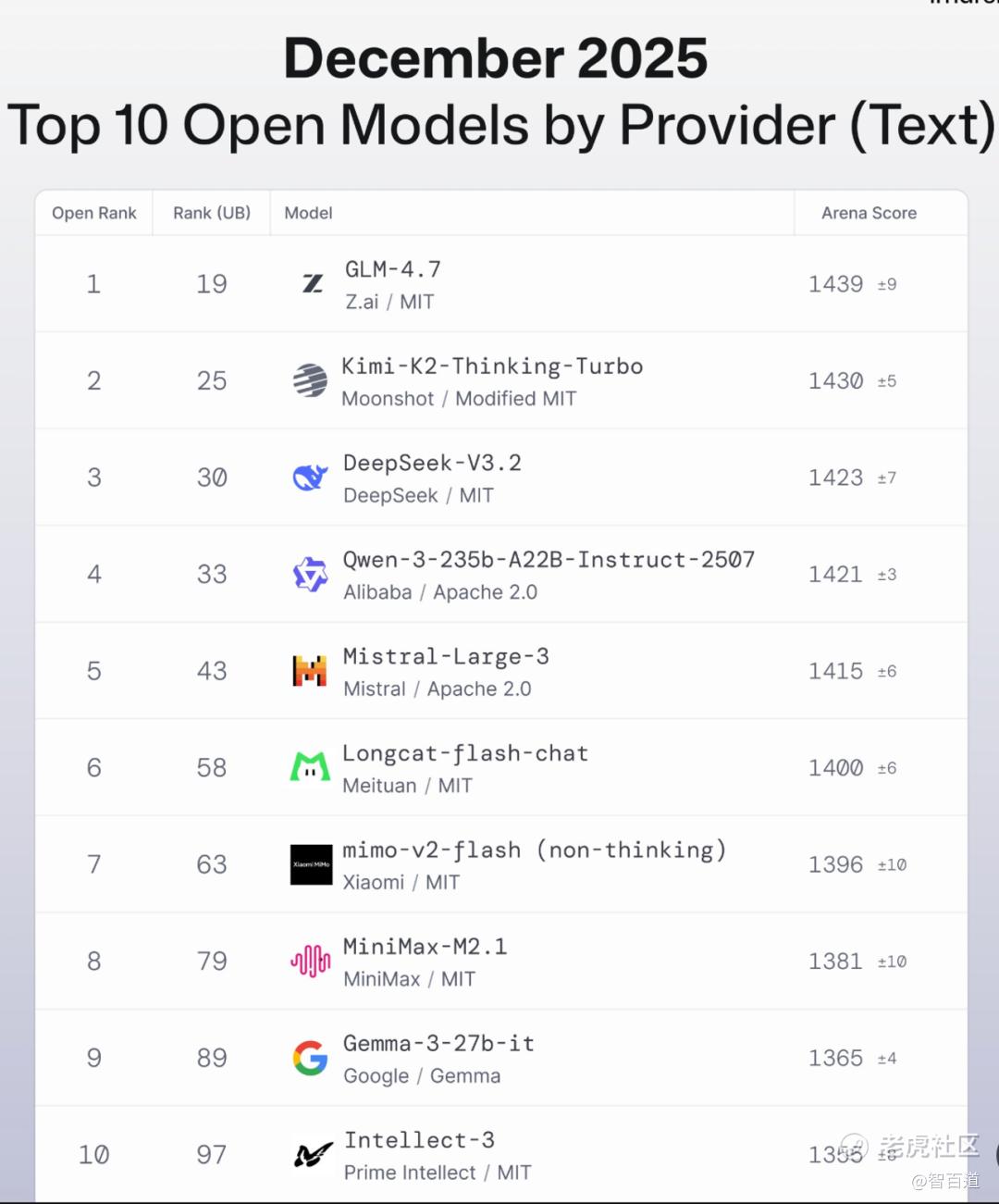 这一年年终大考中。Lmarena.ai发布的2025年12月发布的开源大模型榜单显示,Kimi-K2-thinking超过DeepSeek v3.2问鼎第二。