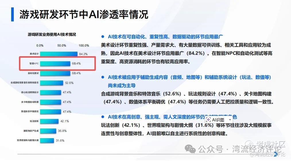 根据游戏工委发布的《游戏企业AI技术应用调研报告》,智能NPC研发中的AI渗透率达到68.4%。