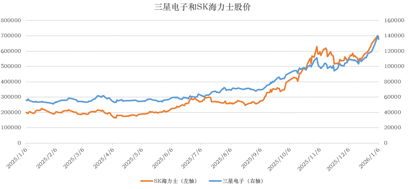 寡头垄断的存储市场在AI需求井喷下,相关产品供不应求,开启疯狂涨价模式!昨日,据《韩国经济日报》援引行业匿名人士消息,三星电子与SK海力士计划在2026年第一季度将服务器DRAM价格较2025年第四季度提升60%至70%。