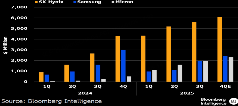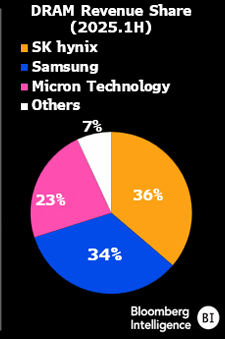 HBM4对三星至关重要,在传统DRAM(动态随机存储器)领域,三星是无可争议的霸主。但因为短视,在AI时代浪潮中,错失了HBM3(高带宽内存)良机,被SK海力士反超,并遭到 $美光科技(MU)$ 的奋力追赶: