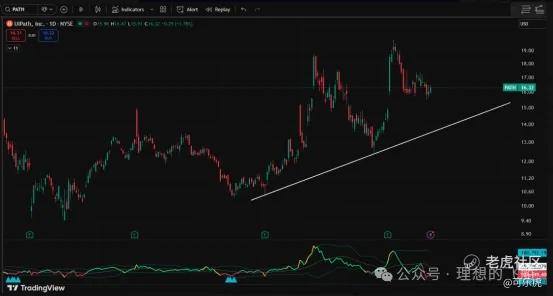 3、PATH:支撑15.8,但是近期在16.7那里遇到大量抛压,估计是想洗盘一下,先拿着观察一阵子。