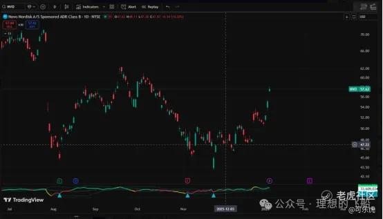 NVO,12月初开始推个股到现在,它算是比较稳的,当时除了TSLA首推,NVO跟亚马逊也是一阶推荐的,目前涨得还不错