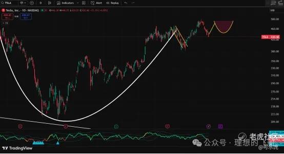 TSLA,大家不要怕,早期我也说过26年7姐妹最靓的仔是TSLA,黄色的路径是TSLA可能的走势,会很不错的耐心等,记得拿正股。