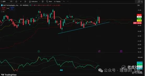 SOFI可能是故意洗盘,今晚暴跌到蓝色的支撑线就稳住了,持续关注。