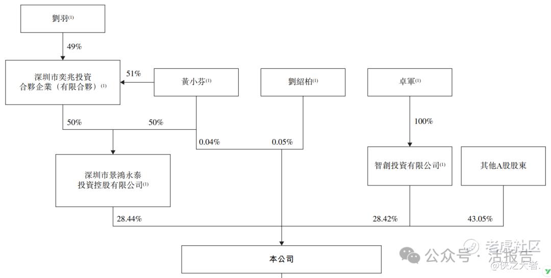 控股股东:景鸿永泰、智创投资、奕兆投资、刘绍柏先生、黄小芬女士、卓军女士、刘羽先生,合计持股56.95%;其中黄小芬女士担任奕兆投资执行事务合伙人,刘绍柏先生、黄小芬女士、卓军女士通过控制景鸿永泰、智创投资间接持股,刘羽先生后续加入一致行动协议。