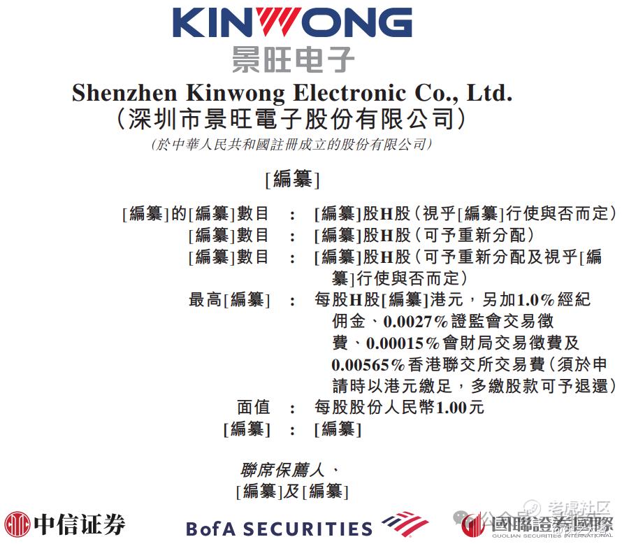 **获悉,深圳市景旺电子股份有限公司Shenzhen Kinwong Electronic Co., Ltd.(简称“景旺电子”)于2026年1月1日首次在港交所递交上市申请,拟在香港主板上市。
