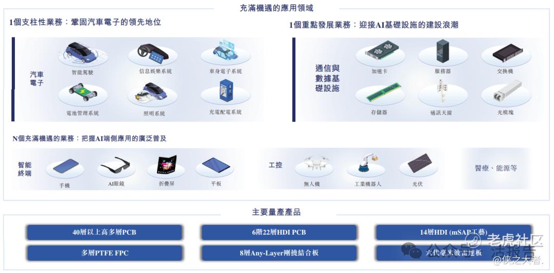 公司在汽车电子PCB领域占据全球领先地位,并战略性重点布局AI计算领域,形成了「1+1+N」的业务模式,即1个支柱型业务(汽车电子)、1个重点发展业务(通信与数据基础设施)和N个高潜力业务组合(涵盖智能终端、工业控制等)。