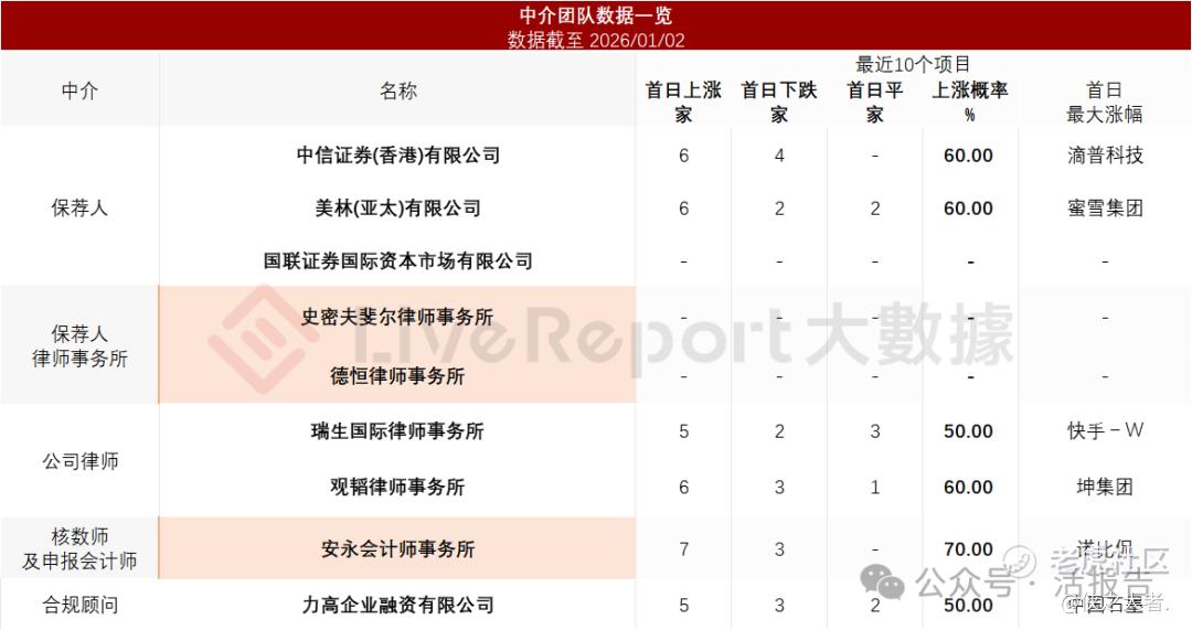 据**大数据统计,景旺电子中介团队共计9家,其中保荐人3家,近10家保荐项目数据表现缺乏亮点;公司律师共计2家,综合项目数据表现有待加强。整体而言中介团队历史数据表现普通。