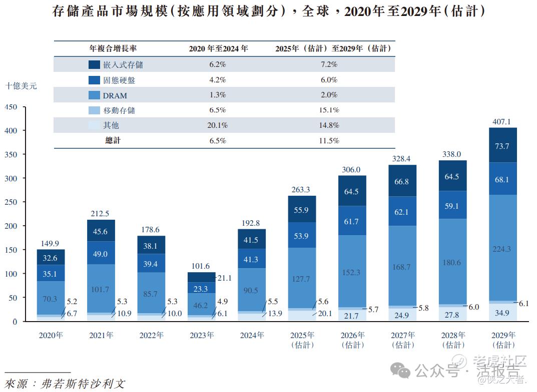 根据弗若斯特沙利文(Frost & Sullivan)的报告,2020年,全球存储产品市场规模为1499亿美元;受益于数字经济下各领域对存储产品的广泛需求,市场规模持续扩大,至2024年增长至1928亿美元,期间年复合增长率为6.5%,展现出存储产品市场的发展韧性。