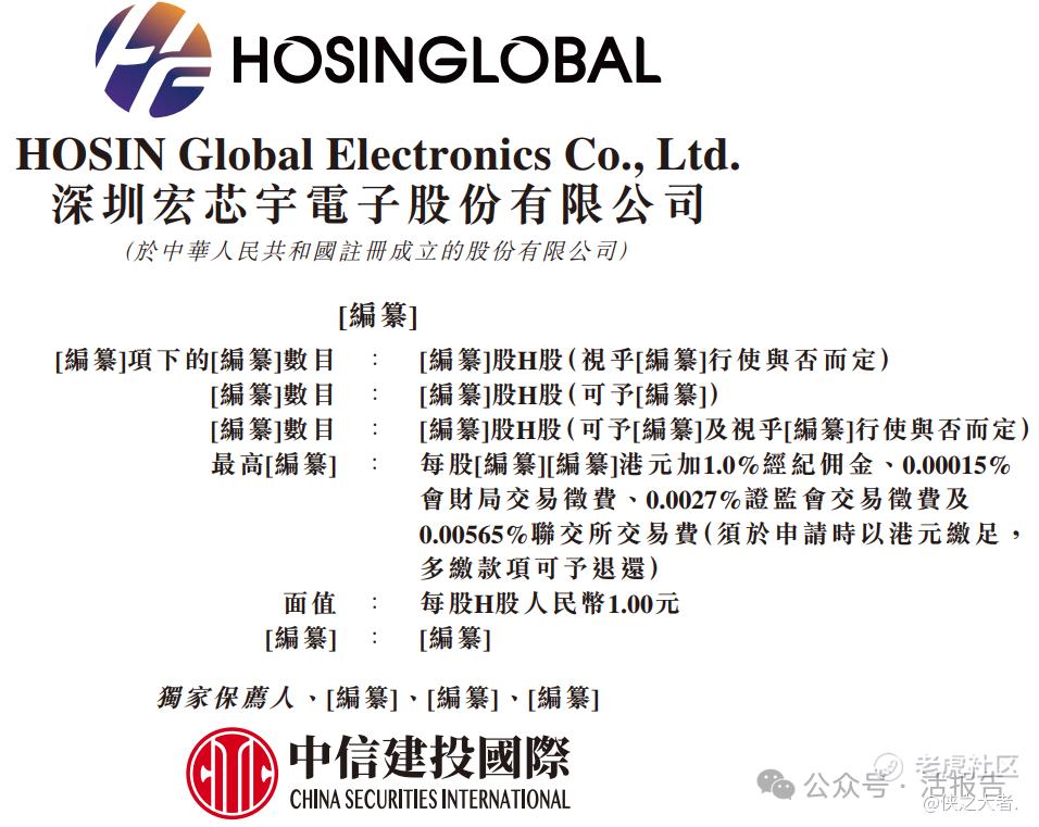 **获悉,深圳宏芯宇电子股份有限公司HOSIN Global Electronics Co., Ltd.(简称“宏芯宇”)于2026年1月1日首次在港交所递交上市申请,拟在香港主板上市。