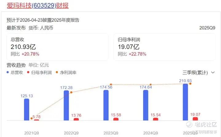拉长观测周期看,从2021年三季报到2022年三季度,爱玛科技的业绩堪称狂飙,哪怕到了竞争最激烈的2024年和2025年,爱玛科技的营收与增速都保持了正增长,以25Q9为例,期内总营收达210.93亿,同比大涨20.78%,归母净利润19.07亿元,同比大张22.78%。