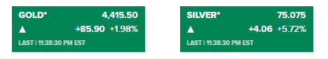 黄金:飙升至4,415.50 美元,涨幅达1.98%。