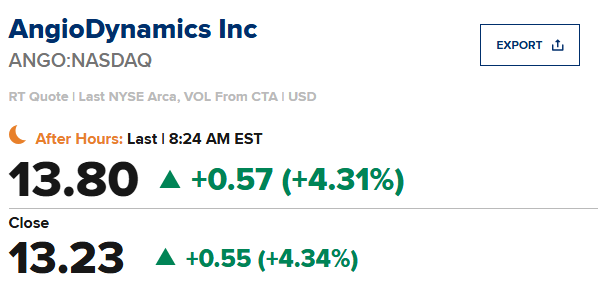 AngioDynamics(ANGO)预计第二季度每股收益为收支平衡,比市场预期值亏损0.10美元高出 0.10 美元;预计营收同比增长 9.1%,达到 7940 万美元,市场预期值 7643 万美元。该公司预计26财年每股收益在(-0.33)美元至(-0.23)美元之间,市场预期值为(-0.33)美元;预计 2026 财年营收为 3.12 - 3.14 亿美元,市场预期值 3.1026 亿美元。
