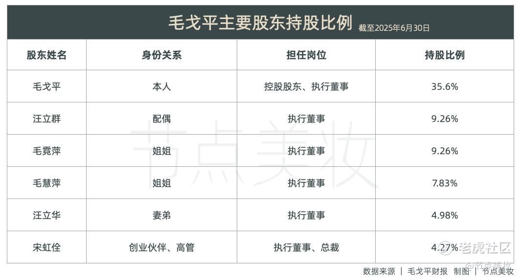 按照截至2025年6月30日的持股比例计算,上述毛戈平及其亲属5人持股比例为66.93%。再加上由毛戈平实际控制的杭州嘉驰、杭州帝景,毛戈平家族在上市公司的实控股权比例达到68.8%,超过三分之二。这种密集的家族持股结构,为此次协同减持提供了便利条件。
