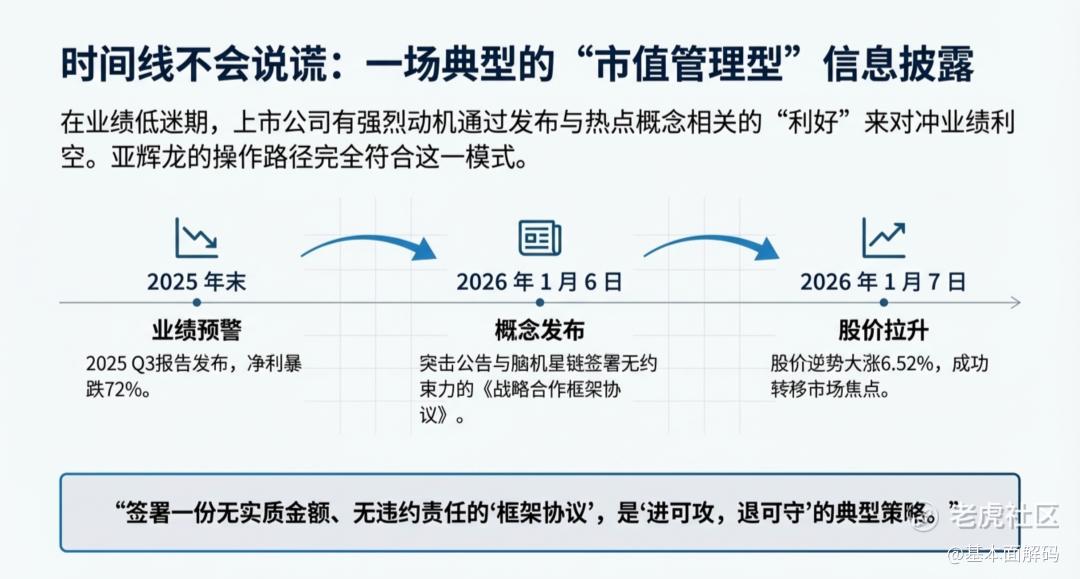 在当前中国资本市场深化改革、全面实行股票发行注册制的宏观背景下,上市公司信息披露的真实性、准确性、完整性已成为监管工作的重中之重。基本面解码研究员,发现近期市场上出现了一股借“脑机接口”、“人工智能”等热点概念进行题材炒作的现象,部分上市公司在业绩承压的背景下,通过发布缺乏实质约束力的“战略合作框架协议”,意图通过“叙事经济学”手段提振股价,掩盖主业下滑的颓势。