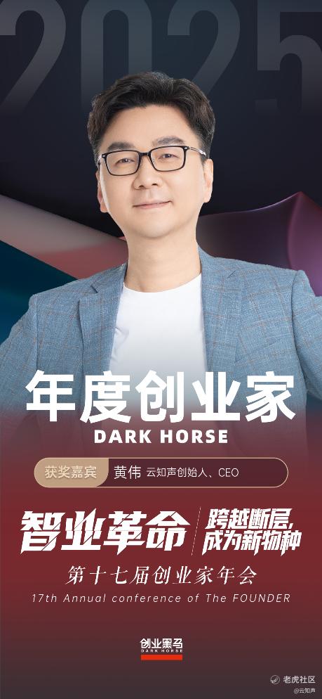 作为国内创业领域极具影响力的权威评选,创业黑马“年度创业家”奖项自2012年设立以来,始终以挖掘未来商业领袖、指引产业发展方向为核心宗旨,遴选在技术创新、产业变革、商业实践中取得卓越成就的创业者。此次黄伟博士的入选,既是对其个人创业理念与行业洞察力的高度认可,更是对云知声在AGI产业化道路上引领性贡献的充分肯定。