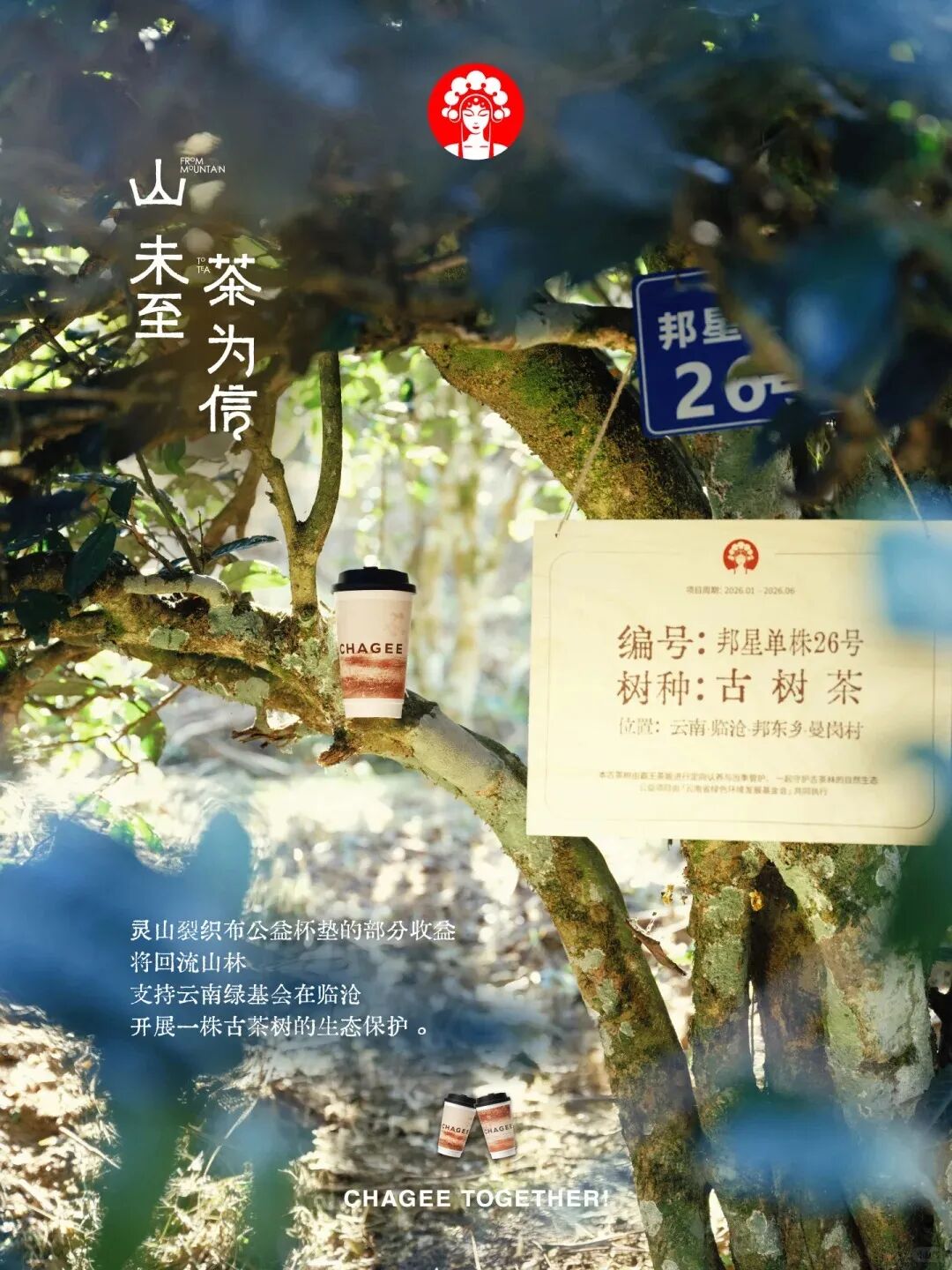1月9日,霸王茶姬携手设计生活杂志品牌Wallpaper*中文版,发起“灵山有信”计划,溯源云南冰岛村文化。活动在广东、上海、云南、海南、广西、湖南地区推出包含挂件、徽章、杯垫等周边的套餐。茶友购买该活动套餐的部分收益,将用于古茶树生态保护。