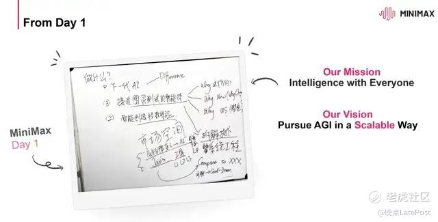MiniMax 的思路是同时做文本、语音和图像模型,以大模型和多模态技术做出可以服务普通人的 AI 应用。这是 MiniMax 成立时确立的愿景:Intelligence with everyone。