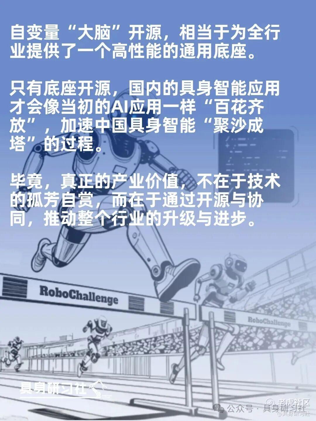 毕竟,真正的核心竞争力,不在于实验室中的参数高低,而在于真实世界中的作业能力;真正的产业价值,不在于技术的孤芳自赏,而在于通过开源与协同,推动整个行业的升级与进步。