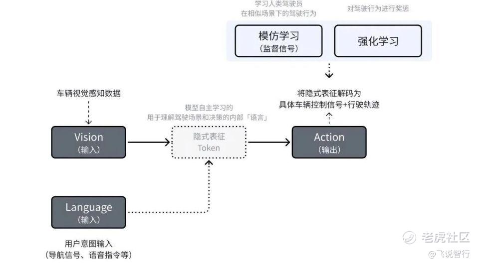因为从架构上看,VLM只是覆盖了传统端到端的感知到决策流程,缺乏对于最后控制输出的理解,导致端到端架构依然存在多模块的协作,消耗过多算力的同时,整体效率还不高。