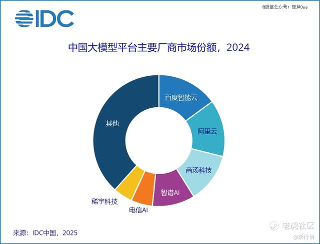 IDC的报告显示,2024年中国大模型平台主要厂商市场份额的排名是:百度智能云(*)、阿里云(第二)、商汤科技(第三)、智谱AI(第四)。