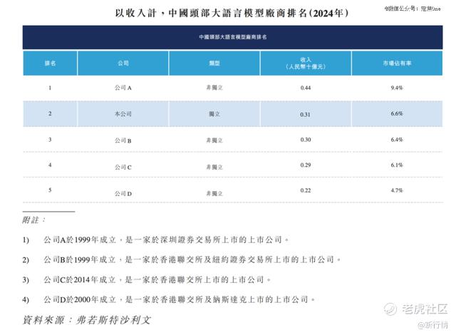 此前有一张颇具话题性的中国大模型厂商2024年收入排名图,按照图中说法,智谱排在第二位,剩下的A、B、C、D推测分别为科大讯飞、阿里巴巴、商汤科技、百度。