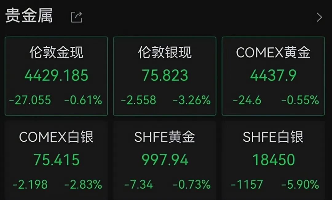 不仅是白银,这两天黄金的走势也类似,不同的是金价走势明显要稳得多。现货黄金在上摸到4500美元之后开始回调,现在价格大概在4430美元/盎司左右,波动明显没有白银大。
