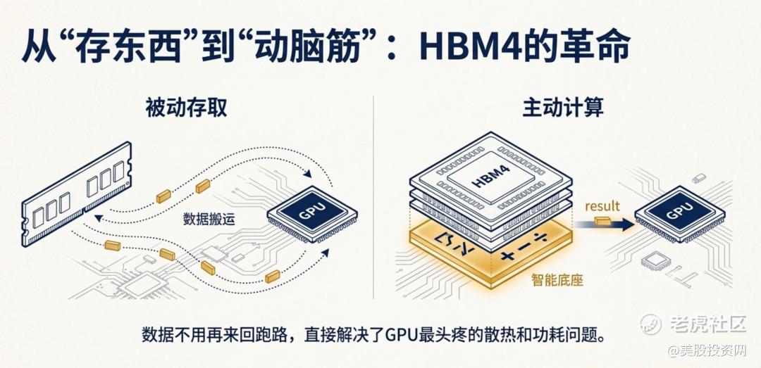 更具革命性的是,美光的 HBM4(新一代超高速显存) 完成了从“存东西”到“动脑筋”的转型。
