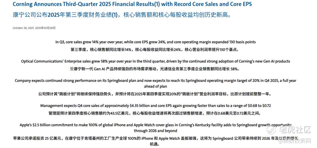 第三只是Corning ,中文名字是康宁,美股代号是GLW。 $康宁(GLW)$