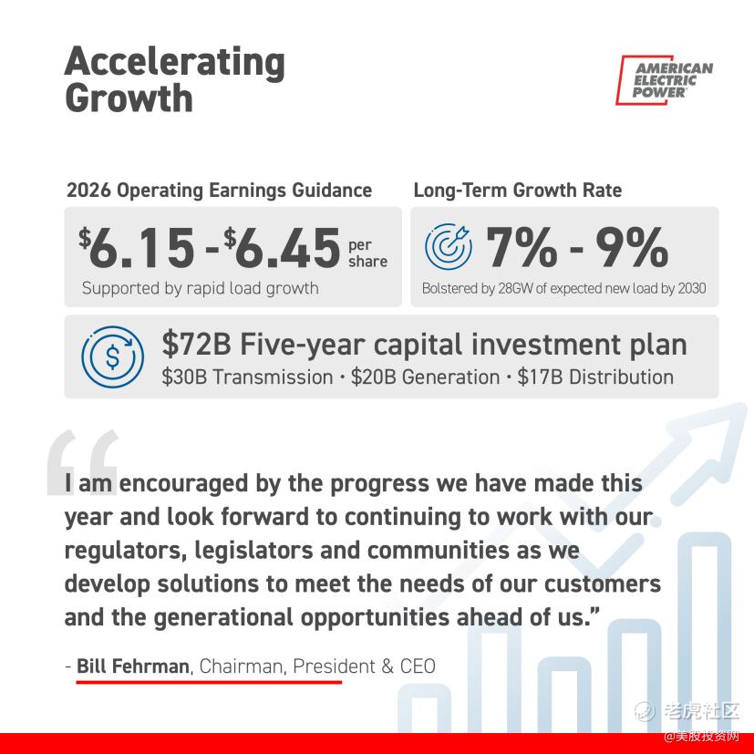 所以整个增长链条就闭合了:用电需求上升,倒逼 AEP 加速扩网,带动资产基数变大,最终让盈利稳步增长。这就是为什么公司敢给出 7%–9% 长期盈利增长指引的底气所在。