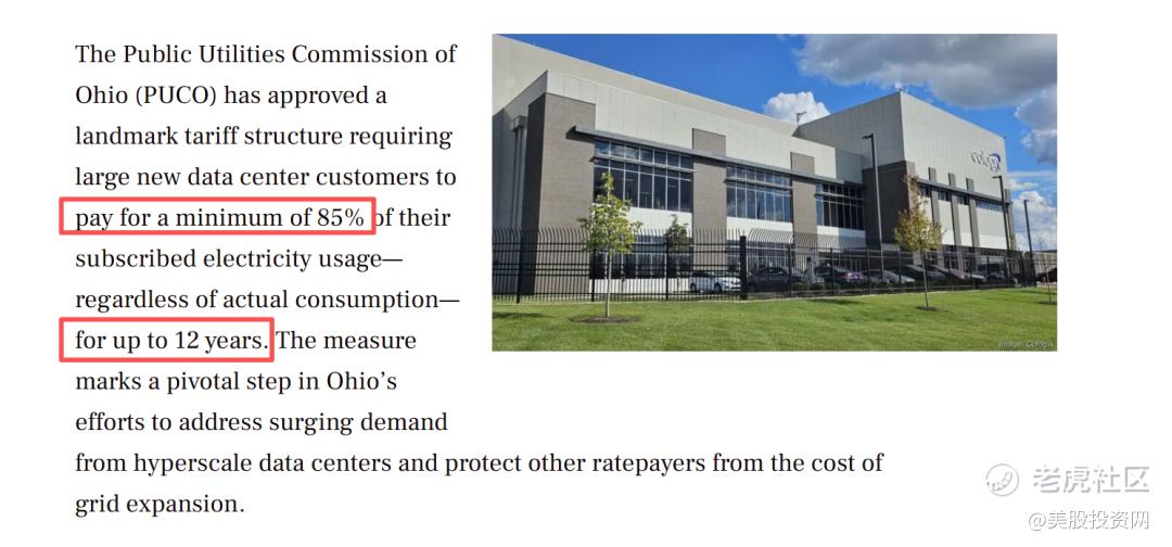 此外AEP 去年拿到了一个非常有竞争力的条款: 在俄亥俄州,大型数据中心客户必须执行“保底付费”协议。
