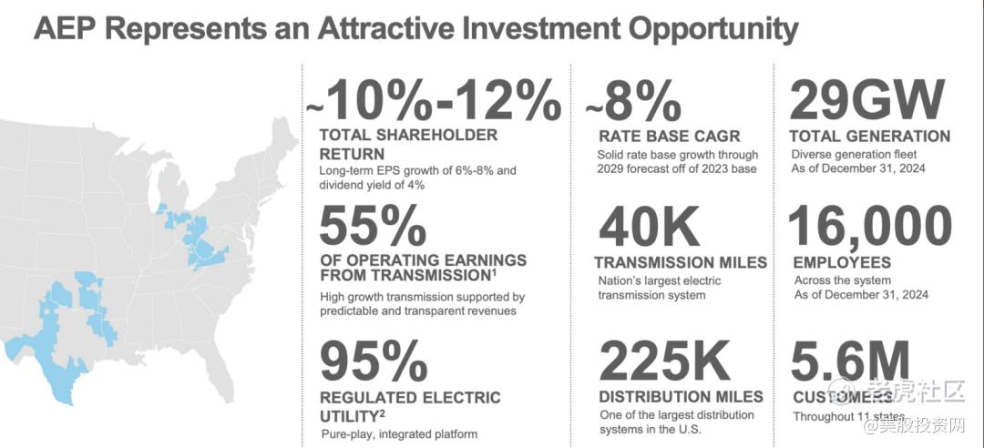 AEP 掌控着全美最庞大的电网资产,包括 4 万英里输电线路和 22 万英里配电线路,覆盖 11 个州。在监管极严、建设周期漫长的美国,这套覆盖 560 万客户的基建网络就是最硬的资产,也是科技大厂为数据中心找电时绕不开的唯一选择。