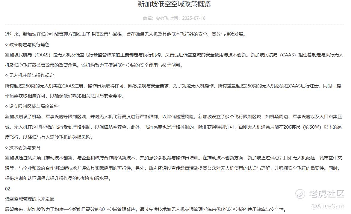 2025年4月,新加坡CAAS发布《UAS Airspace & Corridor Master Plan》,首次划出 3 条永久低空走廊,高度 0-400 ft,其中一条即沿加冷河(Kallang Basin)滨海湾 - 樟宜机场西货运区。而 Grab 的这次试点航线Tanjong Rhu↔Marina Square 也正位于该走廊最西端。也就是说监管这个方面,新加坡民航局(CAAS)已经为他们打开了绿灯啦。