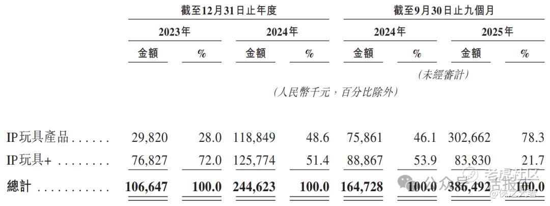 公司收入主要来自IP玩具产品与IP玩具解决方案(“IP玩具+”)两大核心业务。重大部分来自IP玩具+业务,2023年和2024年占总营收比例分别为72.0%和51.4%,为企业客户提供涵盖IP合作、产品设计及制造的端到端解决方案;IP玩具产品收入占比相对较小,2023年和2024年分别为28.0%和48.6%,通过多元渠道向终端消费者销售授权IP玩具。