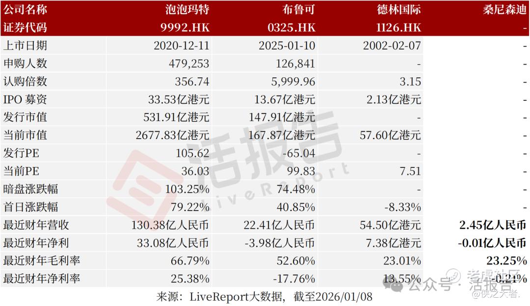 同行业IPO可比公司:泡泡玛特(9992.HK)、布鲁可(0325.HK)、德林国际(1126.HK)