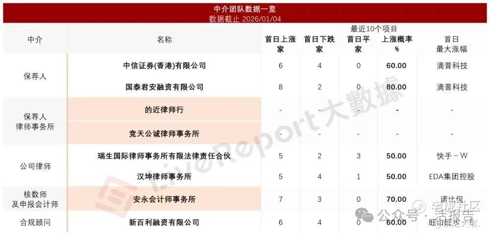 据**大数据统计,斯坦德机器人中介团队共计8家,其中保荐人2家,近10家保荐项目数据表现尚可;公司律师共计2家,综合项目数据表现平平。整体而言中介团队历史数据表现一般。
