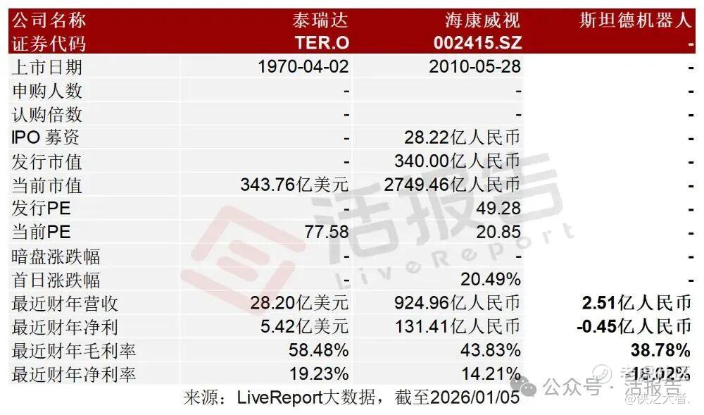 同行业IPO可比公司:泰瑞达(TER.O)、海康威视(002415.SZ)