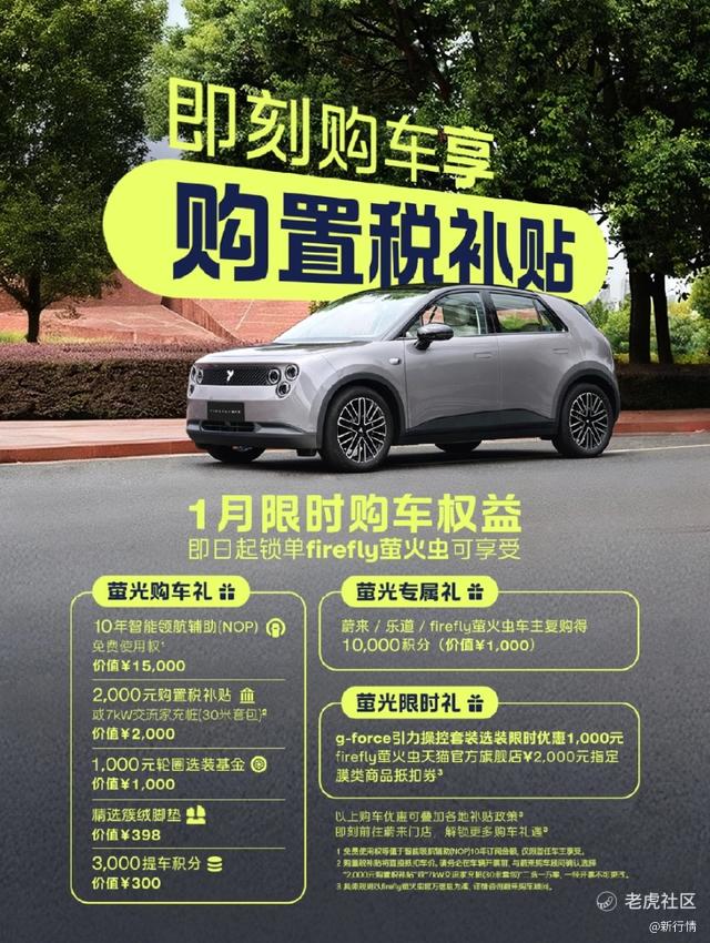 蔚来宣布,旗下萤火虫品牌向锁单用户提供包括10年智能领航辅助服务、2000元购置税补贴等在内的购车权益,同时向蔚来、乐道及萤火虫品牌车主提供复购奖励。