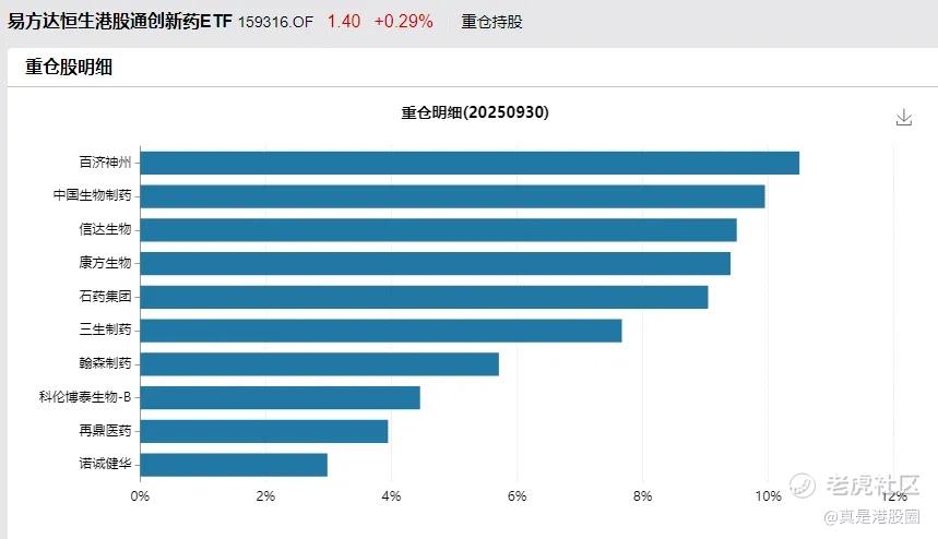例如港股通创新药ETF易方达(159316)是不错的选择,重仓股以创新药龙头为主。未来BD交易有望更频繁,金额也可能更大,龙头公司平台化优势更明显。场外的朋友也可关注联接基金(A/C:024328/024329)。