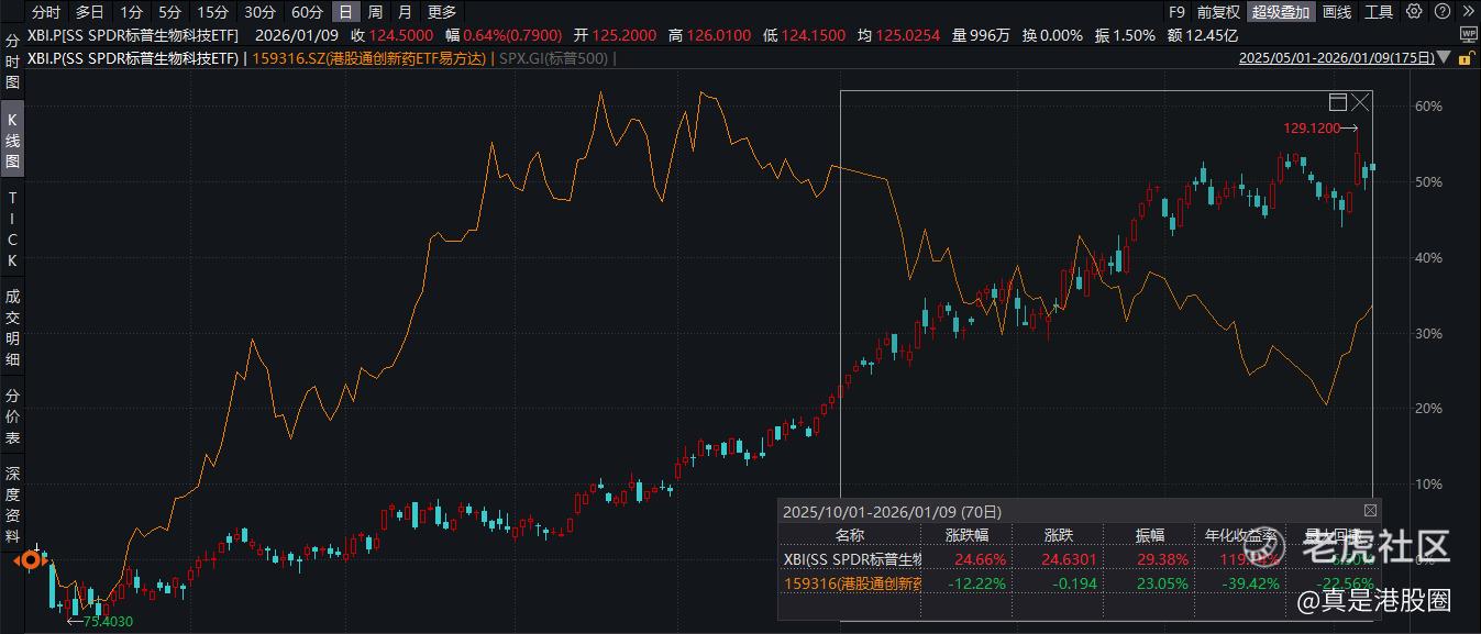 主要原因有几个,一是因为全球市场的大涨,美股XBI生物科技在25年四季度连续跑赢大市,现在港股创新药开始追回两者的涨幅差;二是市场的风险偏好改善,开年一周多的交易里,AI主题的交易延续,美股创新药也创下新高,中美两地的资金都主要在做这两个板块;三是市场对本周举行的JPM医疗健康大会有所期待,中国创新药企的数据有机会促成更多BD交易发生。